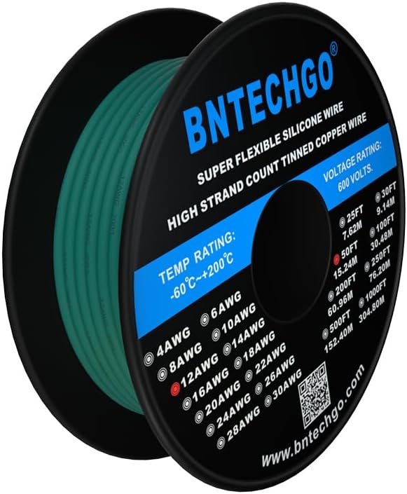 **Product Title:** BNTECHGO 12 Gauge Silicone Wire Spool, 50 ft – Green Flexible 12 AWG Stranded Tinned Copper Wire **Product Description:** Upgrade your wiring projects with the BNTECHGO 12 Gauge Silicone Wire Spool. This high-quality wire is perfect for a variety of applications, from DIY electronics to automotive projects and beyond. **Key Features:** – **Premium…