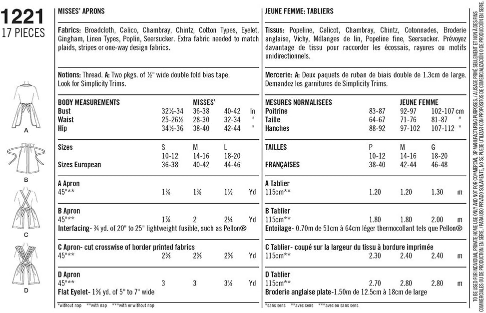 **Simplicity Vintage 1221: 1940’s Fashion Women’s Apron Sewing Pattern Kit, Sizes S-L** Step back in time with the Simplicity Vintage 1221 Apron Sewing Pattern Kit, capturing the essence of 1940’s fashion with elegance and charm. This delightful pattern kit offers a unique opportunity to craft your own vintage-style apron, perfect for those who appreciate classic…